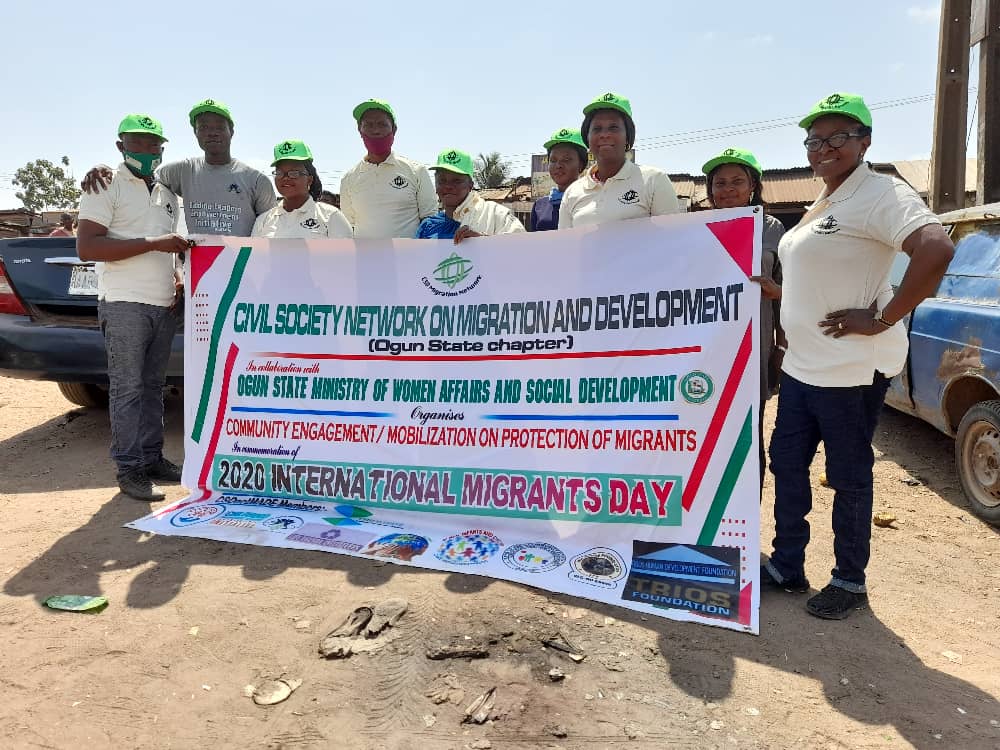 Community Engagement/ mobilization on protection of migrants by CSONetmade (Ogun State) in conjunction with Ogun State Ministry of Women Affairs and Social Development to mark the “2020 International Migrants Day”